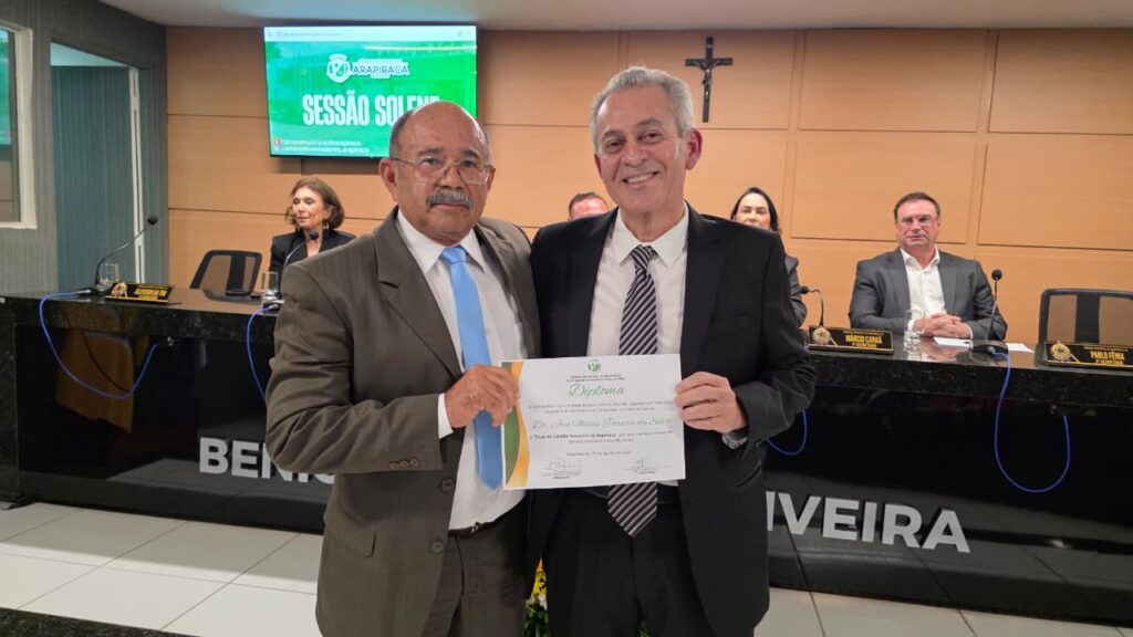 Em sessão solene realizada na noite dessa quinta-feira, 21 de agosto de 2025, a Câmara Municipal de Arapiraca prestou uma homenagem que ecoa na história da cidade: a concessão do título de Cidadão Honorário de Arapiraca ao médico Ulisses Pereira da Silva, por sua trajetória de dedicação à saúde pública e ao desenvolvimento social desse município.
