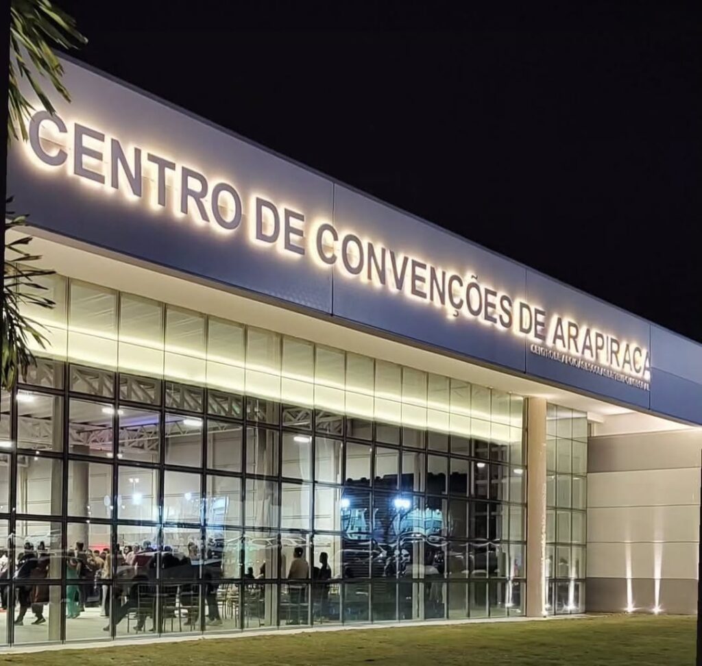 Com área construída de 4 mil metros quadrados, o Centro de Convenções de Arapiraca possui moderna estrutura com auditórios climatizados, salas de apoio, área para exposições, foyer amplo, estacionamento, espaços para feiras, congressos, seminários e encontros corporativos.