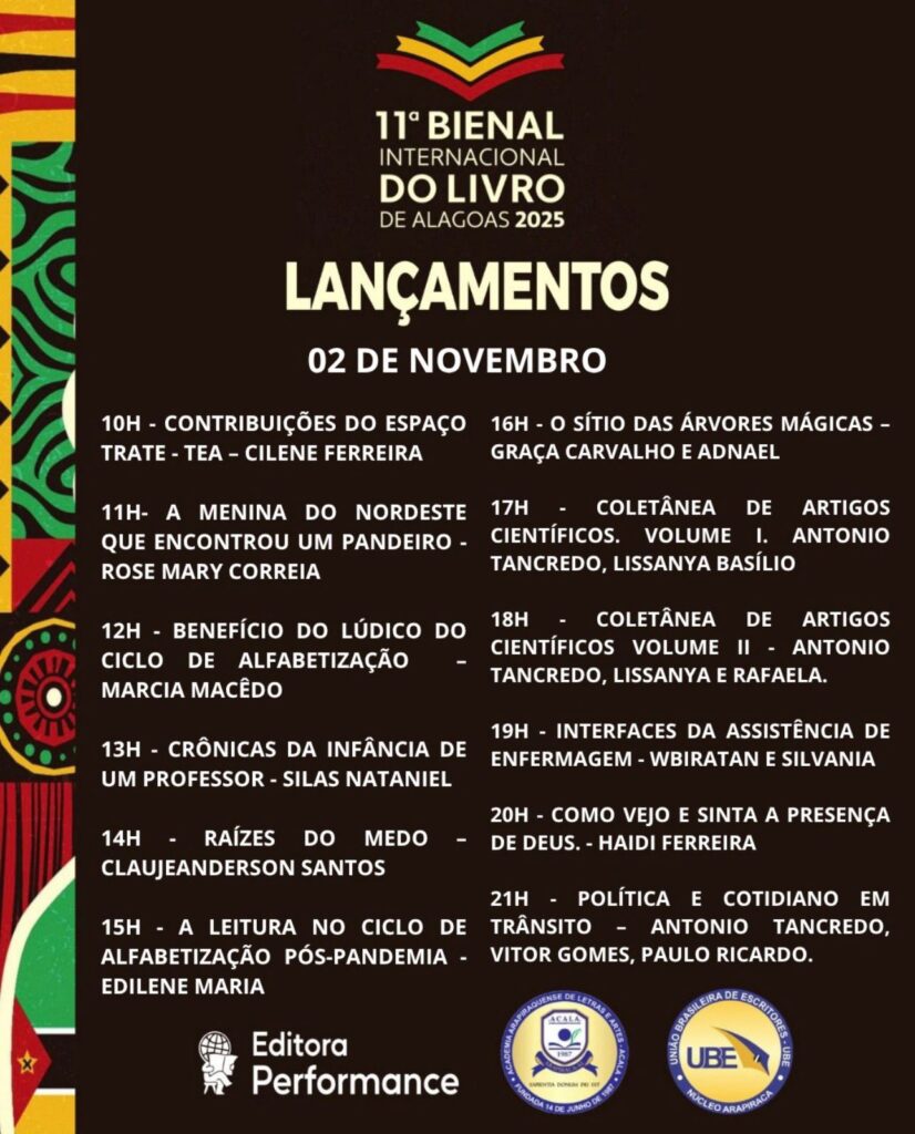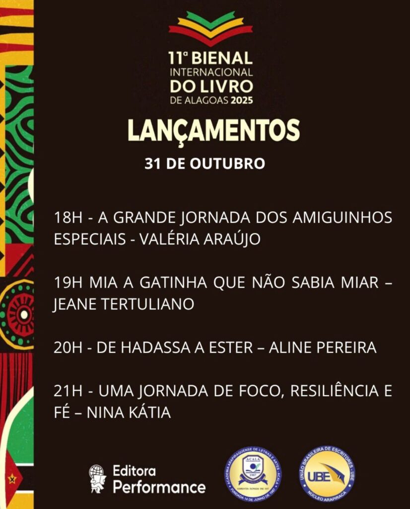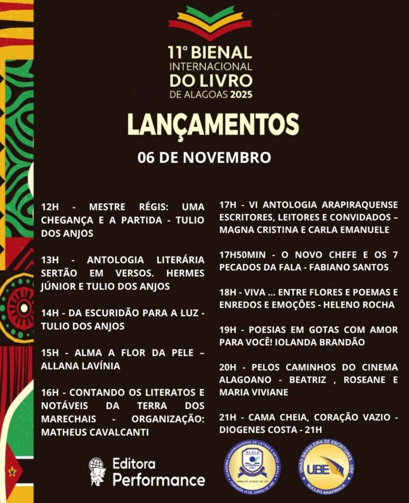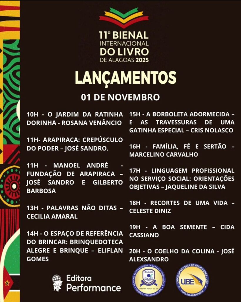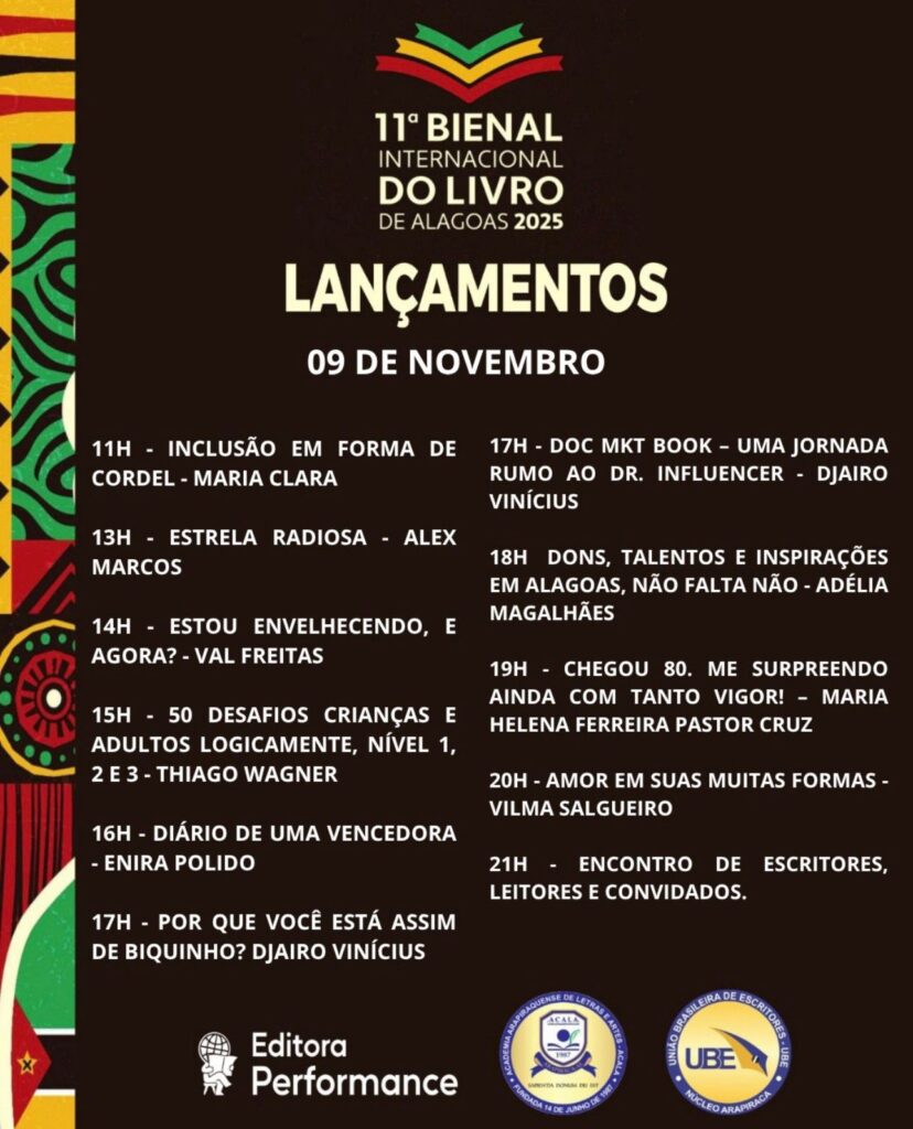 O evento será uma oportunidade única de celebrar a produção literária local, fortalecendo a identidade cultural de Alagoas e mostrando que a criatividade e o talento alagoano têm voz, vez e espaço no cenário nacional. A Editora Performance se consolida como protagonista dessa história, elevando a literatura do estado a um novo patamar.